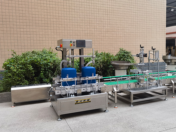 功能概述: 雙頭稱重灌裝設備,可適用于各種大桶類型的液體、膏體、粘度較高產品的自動生產。自動定量灌裝機通過智能控制系統,能夠實時監測物料的生產克重,確保生產精度的精確性,雙頭稱重灌裝設備擁有自動去皮、自動灌裝、自動監測、灌裝量儲存等多項功能,有效提高了物料的灌裝工序,確保了生產質量的一致性操作。 適用產品: 技術原理: 1、采用高度精準的稱重感應控制技術,其采樣速度可達到128 次 / 秒,能夠快速、準確地感知物料重量變化,并且將信息輸送至優化軟件。2、以PLC可編程控制器作為核心技術,搭配7寸彩色全中英文雙語液晶顯示屏,一鍵就能完成全部的工作流程,縮短生產周期。 3、感應裝置,專用自動識別感應操控器,具備空桶識別、稱重式撞桶偵測、自動去皮、防呆、故障檢測等技術,確保雙頭稱重灌裝設備的穩定輸出。 4、整機以不銹鋼材質為主要原材料,保證大桶物料灌裝過程中的穩定性,提高機器的長久使用年限。 5、選用大通徑灌裝槍,提升灌裝速度,開始執行生產任務時快速灌裝,接近目標值時速度減緩,確保灌裝速度以及灌裝精度達到業內水平。
