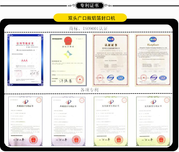 全自動雙頭廣口瓶封口機集機、電、氣于一體,設計科學合理;該機主要由機架,供膜裝置,收膜裝置,熱封切頭,瓶子自動定位裝置,電、氣控制箱及輸送系統組成。具有自動進瓶出瓶、自動恒溫、自動供膜切膜和收膜的功能;采用熱復合工作原理,封口膜的供、收膜全程由減速電機及齒輪付驅動,結構簡單,運行穩定。
